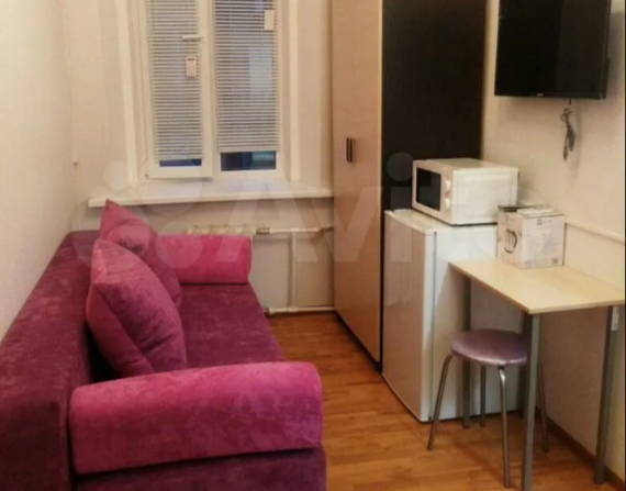 В Пролетарском районе есть вариант немного попросторнее. Его стоимость — 1 миллион 600 тысяч (100 из них — агентству). Это однокомнатная квартира метражом 10,8 квадратного метра. В наличии 8 квадратных метров жилой площади. Санузел раздельный, кровать помещается двуспальная.