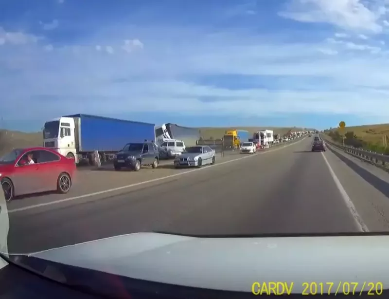 Эта авария вызвала серьезные последствия: на трассе образовалась огромная пробка длиной в 15 километров. Движение пришлось временно приостановить для ликвидации последствий происшествия.