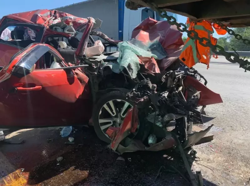 Водитель автомобиля потерял контроль над управлением, и машина вылетела на обочину. В результате столкновения с грузовиком с полуприцепом семейный «Ленд Ровер» превратился в груду металла. Все трое членов семьи погибли на месте.