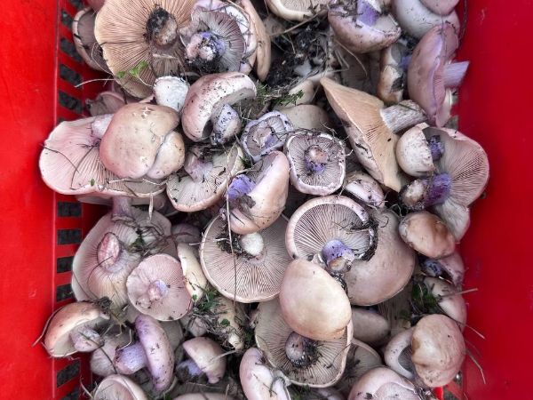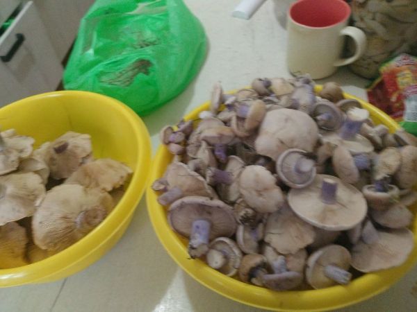 Рядом с Волгодонском получилось собрать полных два ведра рядовки лиловоногой. Эти съедобные грибы отличаются своим лилово-фиолетовым оттенком ножек.